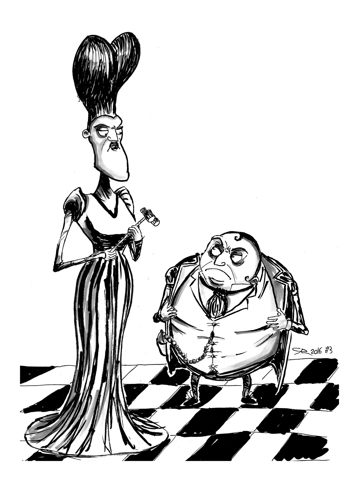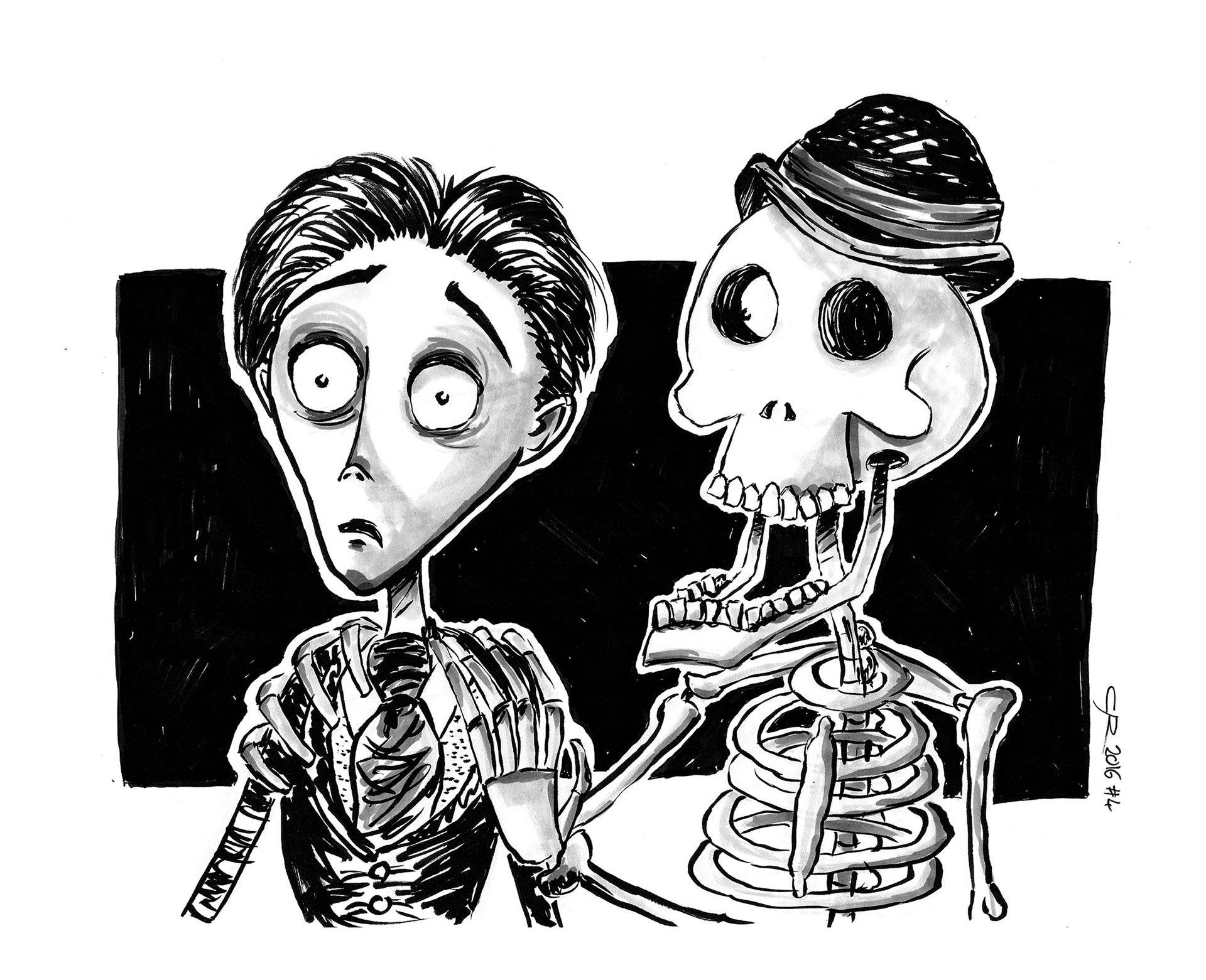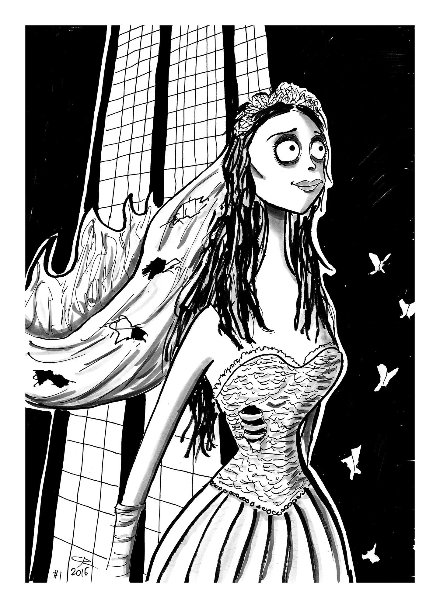 Created for Inktober back in 2016, these were all based on characters from Tim Burton movies. Tools: Pental Pocket Brush, Copic grey wash markers.
